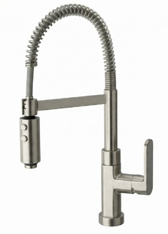 • Single-flow spring spout with adjustable spray handset