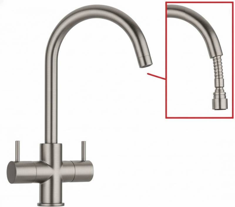 Featuring the popular dual lever design, the pull-out spray